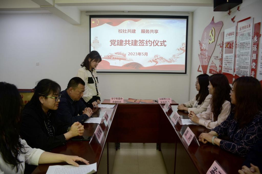 為深入學(xué)習(xí)貫徹落實(shí)習(xí)近平新時(shí)代中國(guó)特色社會(huì)主義思想主題教育的重要論述,著力構(gòu)建高校社區(qū)黨建共建新格局,探索高?;鶎狱h建新路子,5月12日,bv偉德官方網(wǎng)站與安甯街道首創(chuàng)社區(qū)聯(lián)合開(kāi)展“校社共建·服務(wù)共享”黨建共建簽約儀式,結(jié)成黨建共建單位。